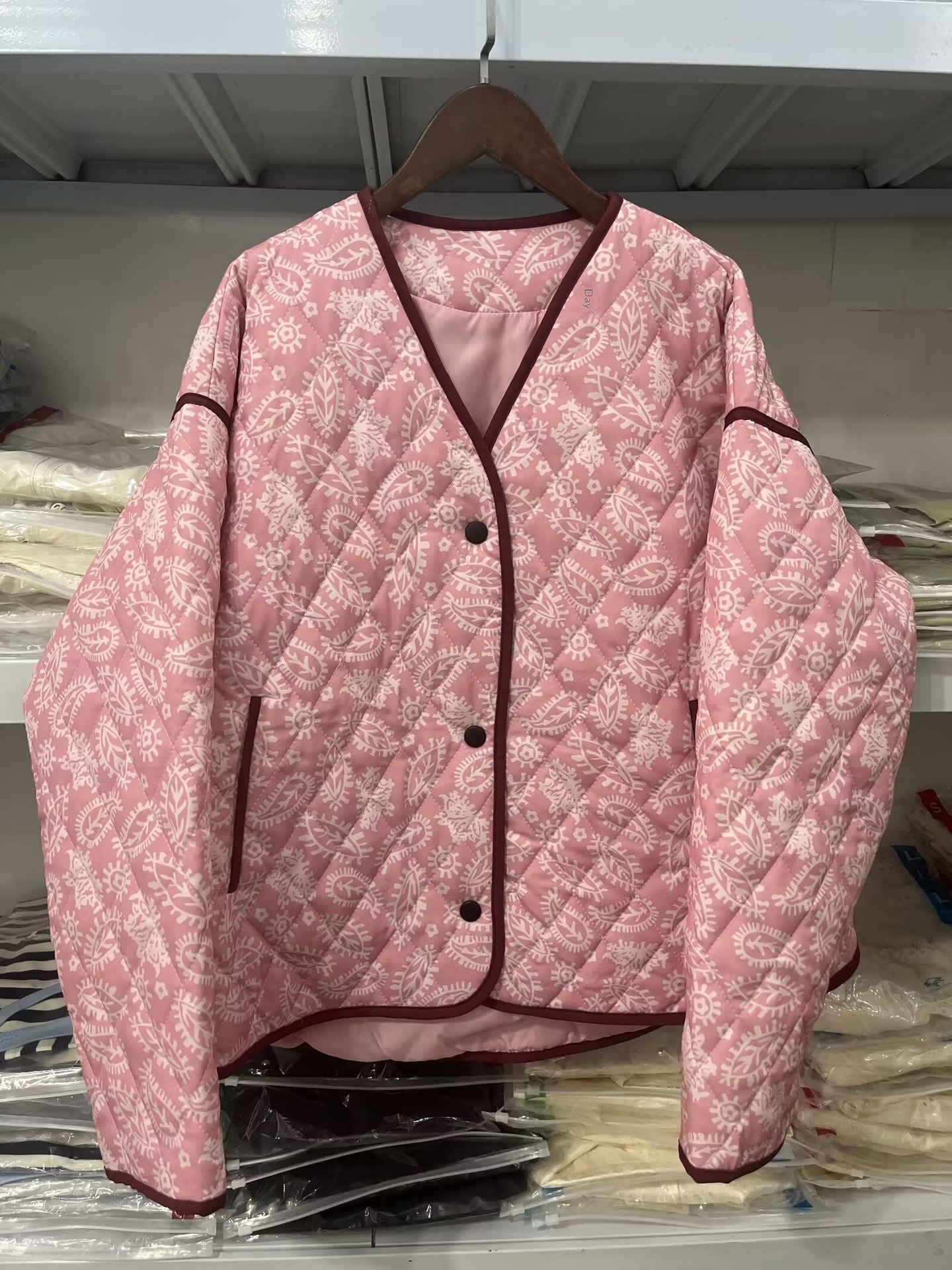 New European And American-style Fashionable Casual V-neck Printed Jacket For Women
